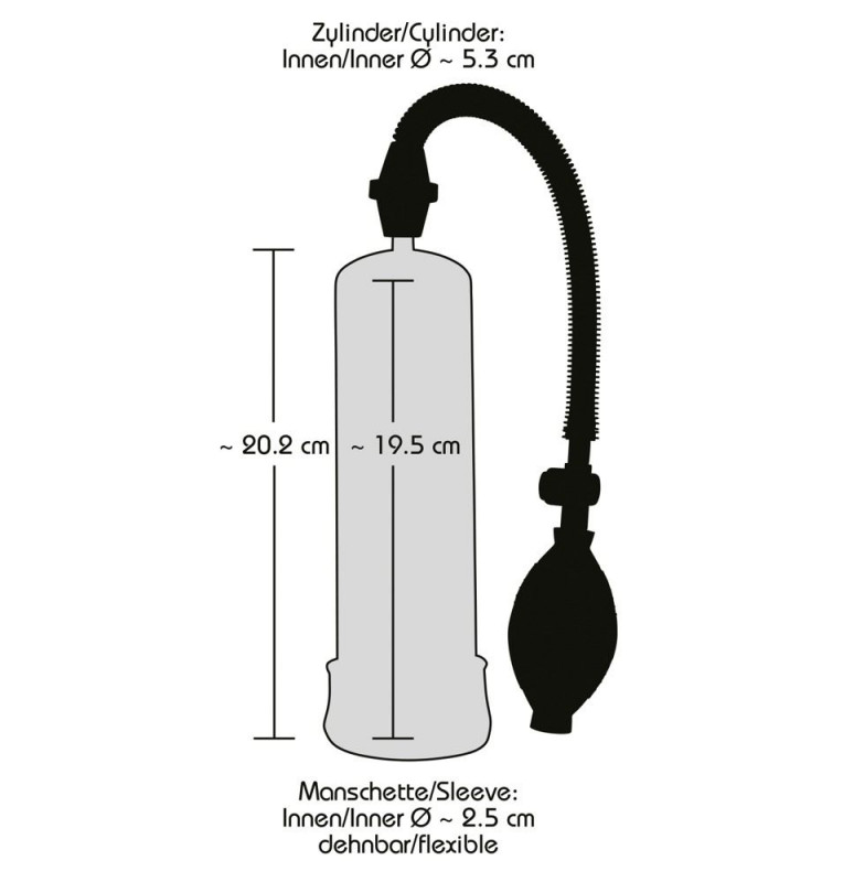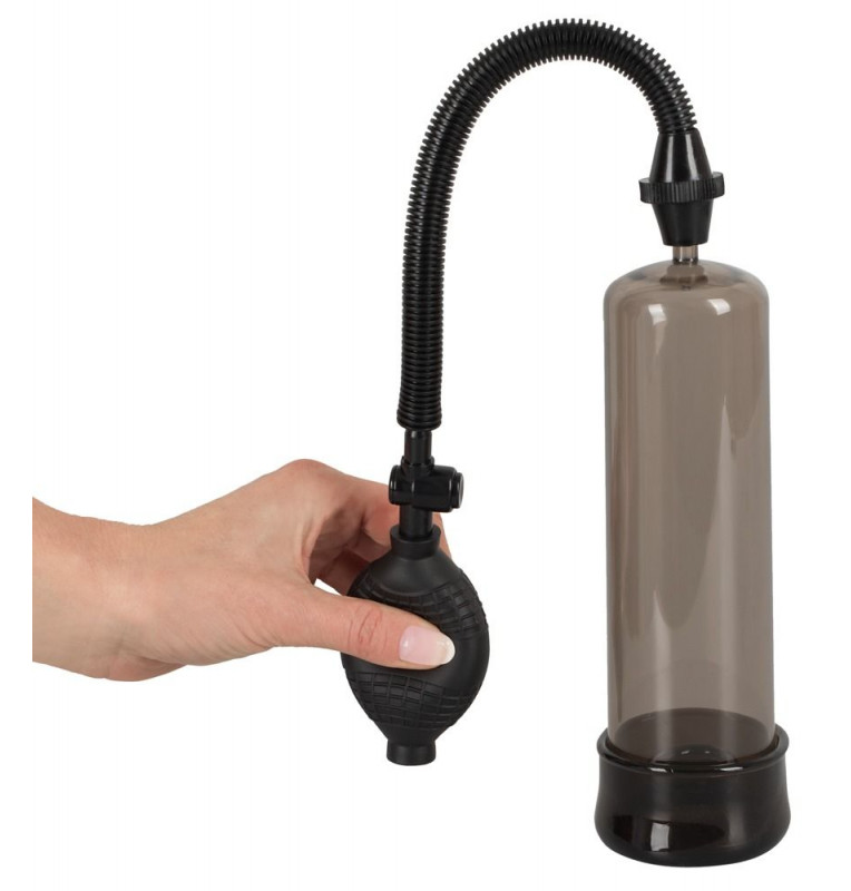 Вакуумная помпа для мужского полового органа. Прозрачный пластиковый цилиндр со съемным мягким вкладышем. Удобная груша для откачки воздуха. Полупрозрачность колбы позволяет наблюдать за процессом и фиксировать результаты тренировок. Рабочая длина - 18,4 см.