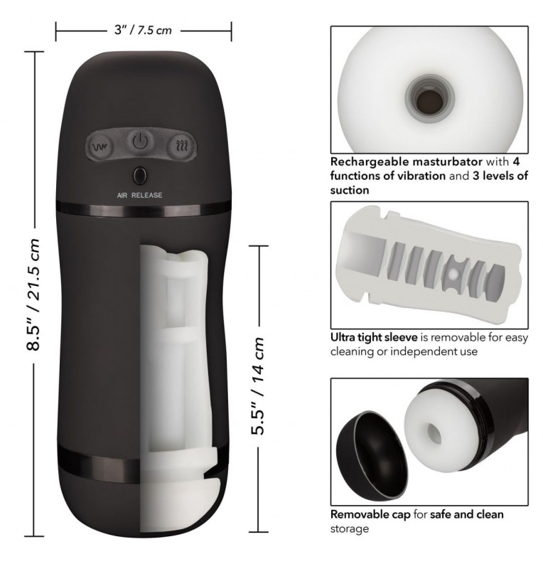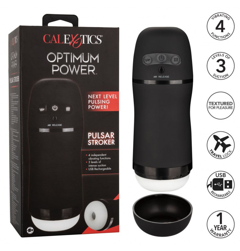 Optimum Power Pulsar Stroker – перезаряжаемый мастурбатор, состоящий из специализированной тубы и вставки открытого типа. Эластичный, упругий и сверхмягкий материал без фталатов создает иллюзию касания к настоящему телу. Сверхплотная камера с текстурированной поверхностью плотно обхватывает член, а 3 уровня мощного всасывания и 4 независимые функции вибрации доставляют беспрецедентное удовольствие от каждого движения. Современная микросхема памяти позволяет запоминать последний выбранный режим. Панель управления easy-touch позволяет легко настраивать функции: удерживайте кнопку питания в течение 3 секунд, чтобы включить / выключить. Сверхплотный, ультрамягкий текстурированный рукав можно снимать для очистки или использовать независимо от тубы. Воспользуйтесь съемной крышкой для безопасного и чистого хранения. Получите удовольствие от всасывания на низкой скорости более 1,5 часов и зарядите игрушку всего за 2 часа с помощью прилагаемого USB-кабеля. Рабочая длина - 14 см. Минимальный диаметр - 7,5 см.