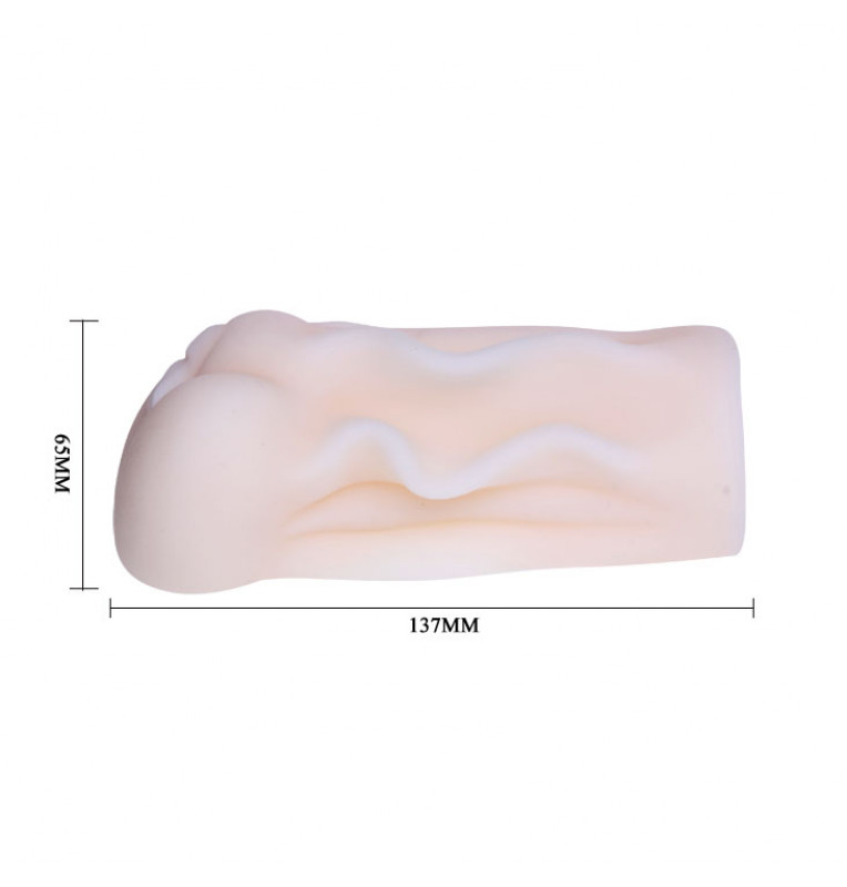Компактный мастурбатор телесного цвета в виде вагины. ластичный материал позволяет растянуть мастурбатор до нужного диаметра и испытать необычайные ощущения. Внутренняя часть имеет рельефную поверхность для интенсивной стимуляции. Наружная часть также имеет рельефную поверхность для большего удобства и исключения скольжения в руке. Нежная, очень податливая, с нежно-розовым цветом половых губ. Диаметр тоннеля в нерастянутом состоянии – 1 см.