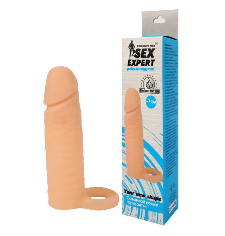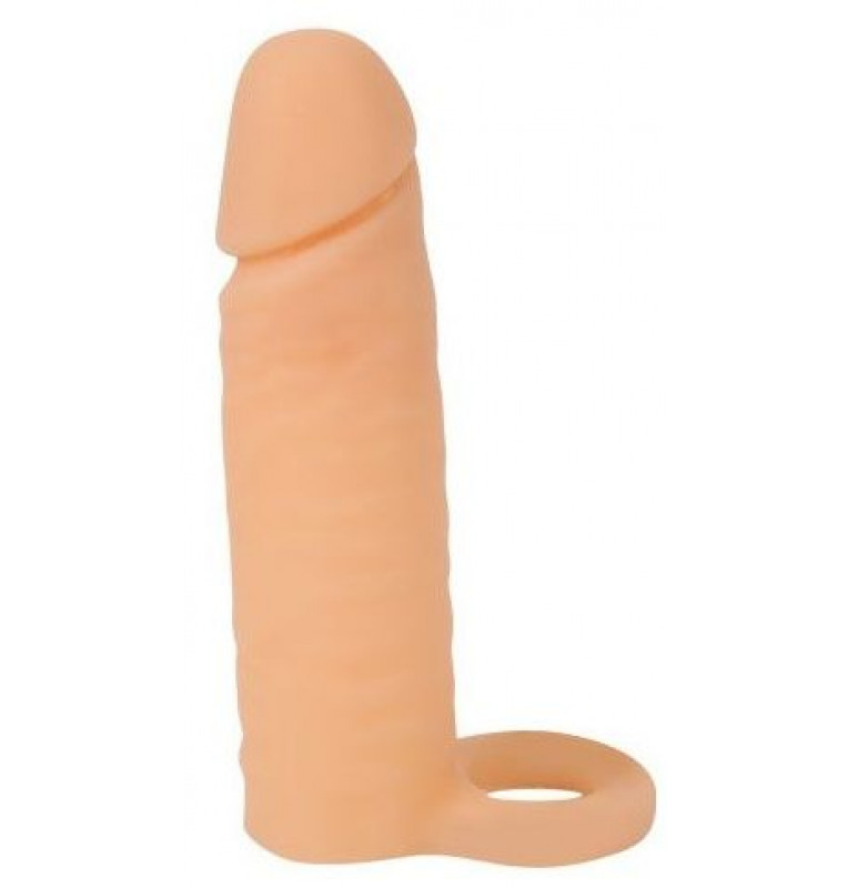 Хотите увеличить размер мужского достоинства? Удлиняющая насадка на пенис с кольцом для мошонки – то, что нужно! Ярко выраженная головка, текстурированная поверхность, естественный оттенок делают интимный аксессуар максимально похожим на половой член. Изделие хорошо растягивается и легко надевается на пенис, увеличивая его длину на 7 см. Кольцо для мошонки не только надежно фиксирует насадку, но и продлевает эрекцию. Насадку необходимо надевать на половой член, находящийся в состоянии слабой эрекции. Непрерывное использование секс-игрушки не должно превышать 15-20 минут. Внутренняя длина насадки - 11,5 см. Внутренний диаметр - 3 см.