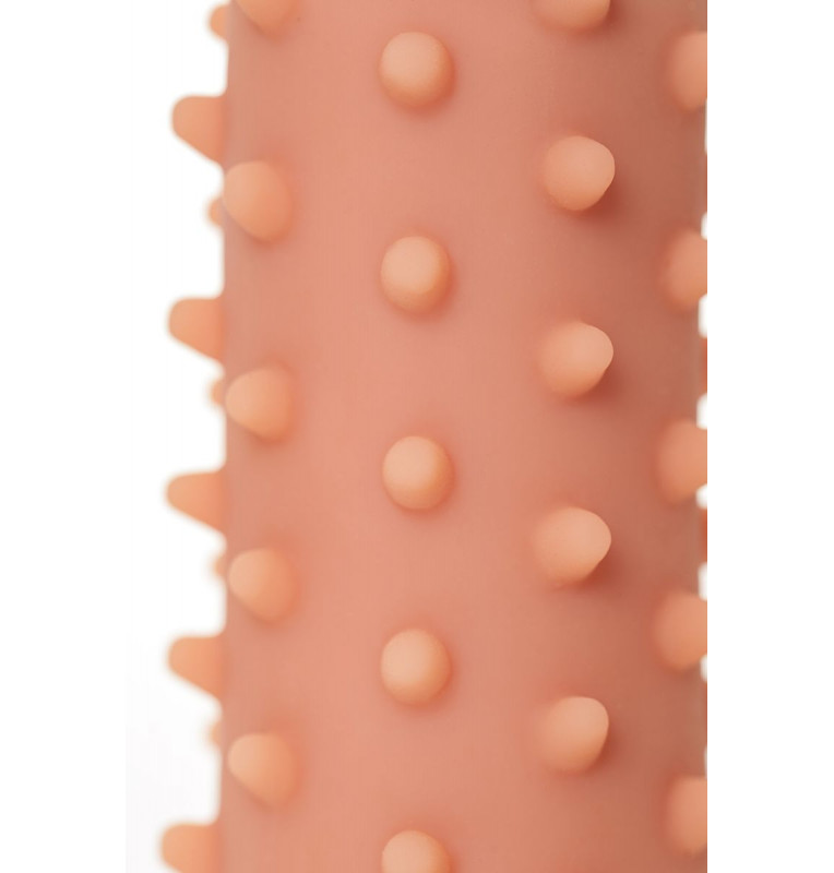 Увеличивающая насадка с впечатляющей дополнительной стимуляцией решает сразу 3 задачи: дарит удовольствие обоим партнерам, позволяет экспериментировать с секс-игрушками и выводит интимную жизнь на более высокий уровень. Желанное разнообразие. Насадка придает члену внушительный объем и новую форму, поэтому как нельзя лучше подходит для сценариев - секс с незнакомцем. При этом выразительный рельеф с выпуклыми пузырьками привносит незабываемый эффект новизны в ощущения партнерши. Зашкаливающее удовольствие для двоих. В то время как женщина испытывает потрясающее чувство наполненности и получает интенсивную стимуляцию стенок влагалища, мужчина наслаждается более продолжительным половым актом и возбуждающими оргазмами партнерши. Яркие эксперименты. Киберкожа прекрасно передает всю мощность вибраций, поэтому насадку можно использовать не только с партнером, но и с любимым вибратором. Вы также оцените какона превосходно тянется и легко надевается на член, обеспечивая при этом плотное и комфортное прилегание. Как быстро принимает температуру тела и насколько она приятна на ощупь.