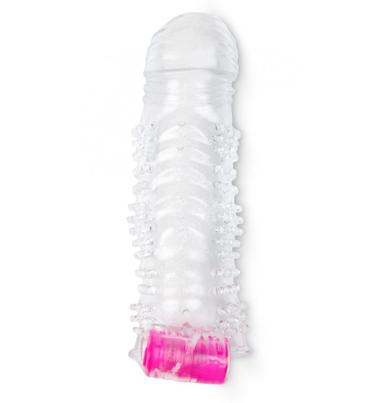 Прозрачная насадка на пенис с шипами и вибропулькой - 13 см.