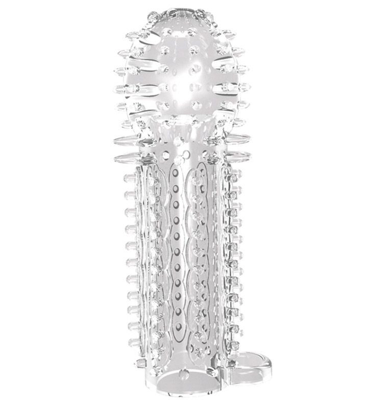 Закрытая прозрачная насадка на пенис с шипиками Nubby Sleeve - 14,5 см.