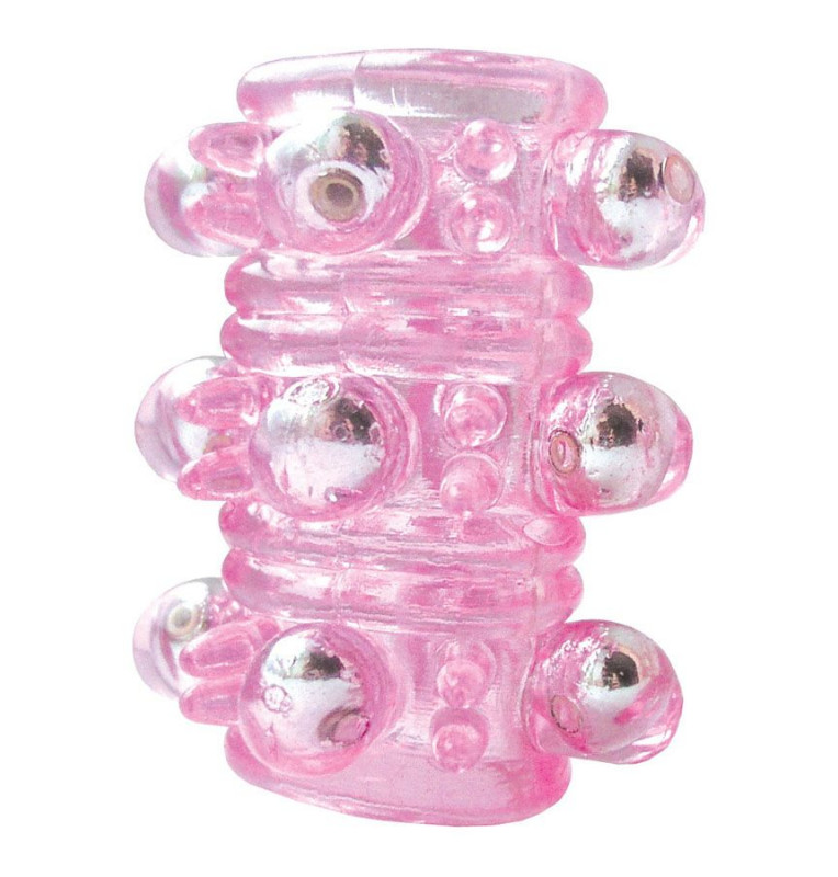 Розовая насадка на пенис Crystal sleeve с шариками и пупырышками - 5,5 см.