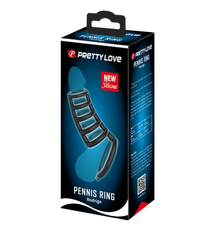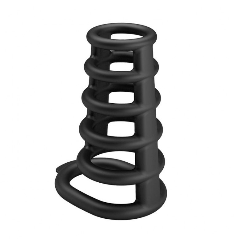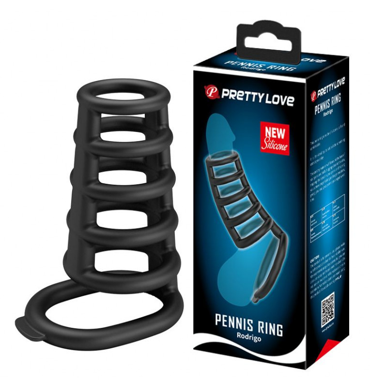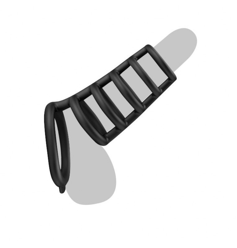 Черная насадка на пенис с подхватом мошонки Rodrigo