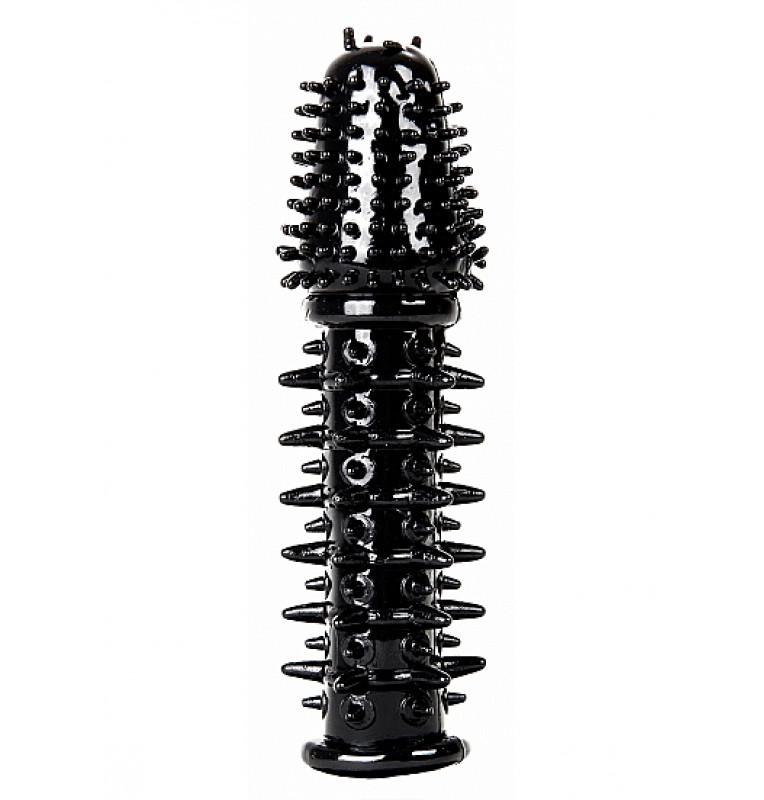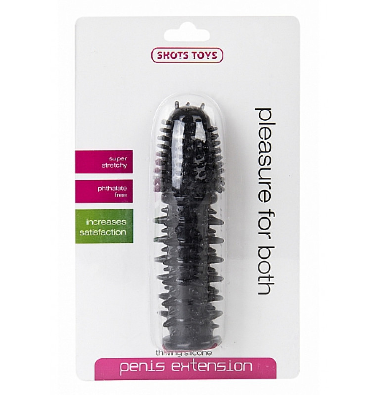 Черная шипованная насадка на пенис с выпуклой головкой