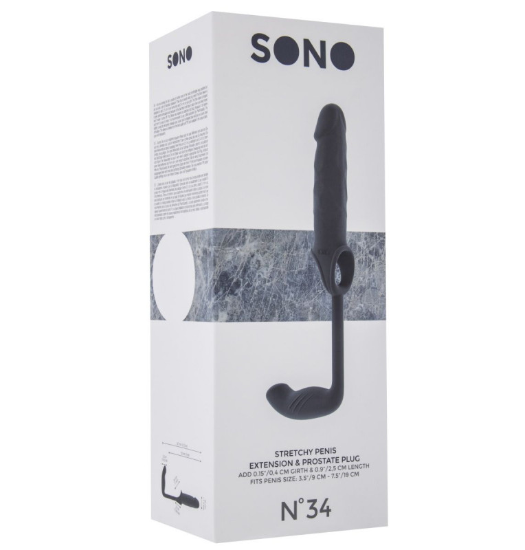 Серая насадка с анальным стимулятором Stretchy Penis Exten and Plug No.34