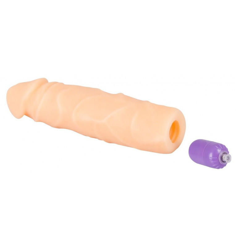 Удлиняющая насадка с вибропулей в головке . Сделана из реалистичного материала. Реалистичный дизайн. Насадка очень эластичная, обеспечивает плотный обхват.
