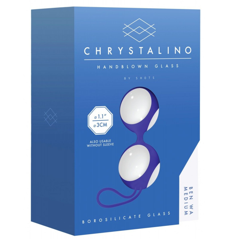 Белые стеклянные вагинальные шарики Ben Wa Medium в синей оболочке