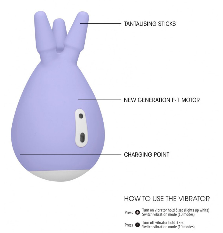 Уникальная игрушка! Клиторальный стимулятор вращается - мягкие выступы нежно ласкают самую чувственную зону. Основная часть имеет гладкую поверхность и работает как обычный вибромассажер. Испытать разнообразные ощущения легко - мощный мотор и удобные кнопки позволят легко включить игрушку. Эта великолепная игрушка помещается в ладони, а 3 закругленных наконечника одинаковой формы вибрируют. Имеет 10 режимов вибрации, тихий в использовании мотор. Заряжается при помощи USB (в комплекте).