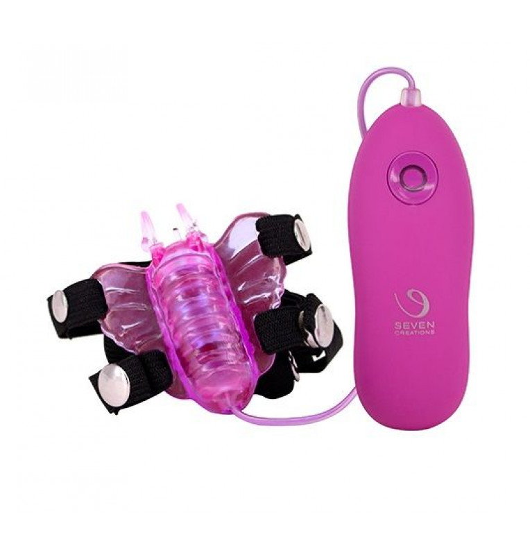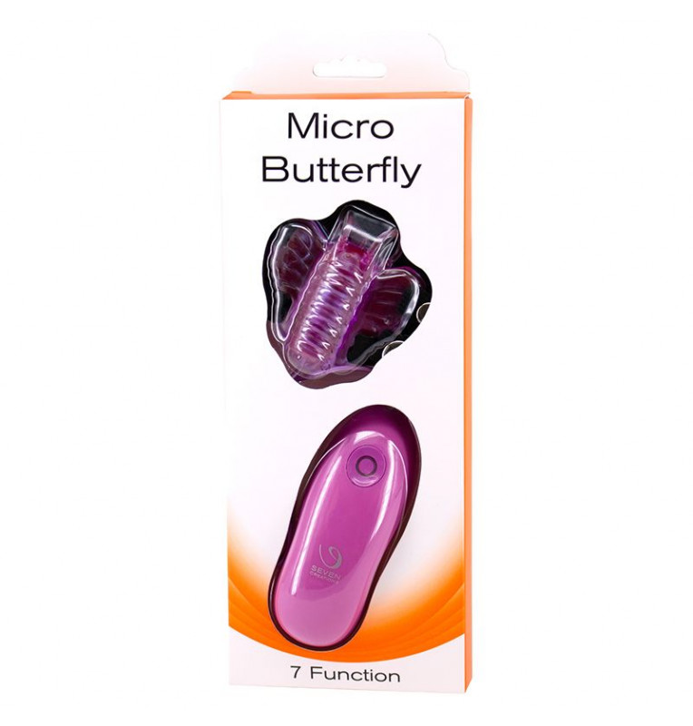 Клиторальный стимулятор MICRO BUTTERFLY в виде бабочки с 7 мощными режимами вибрации и выносным пультом управления. Крепится с помощью эластичных ремешков.
