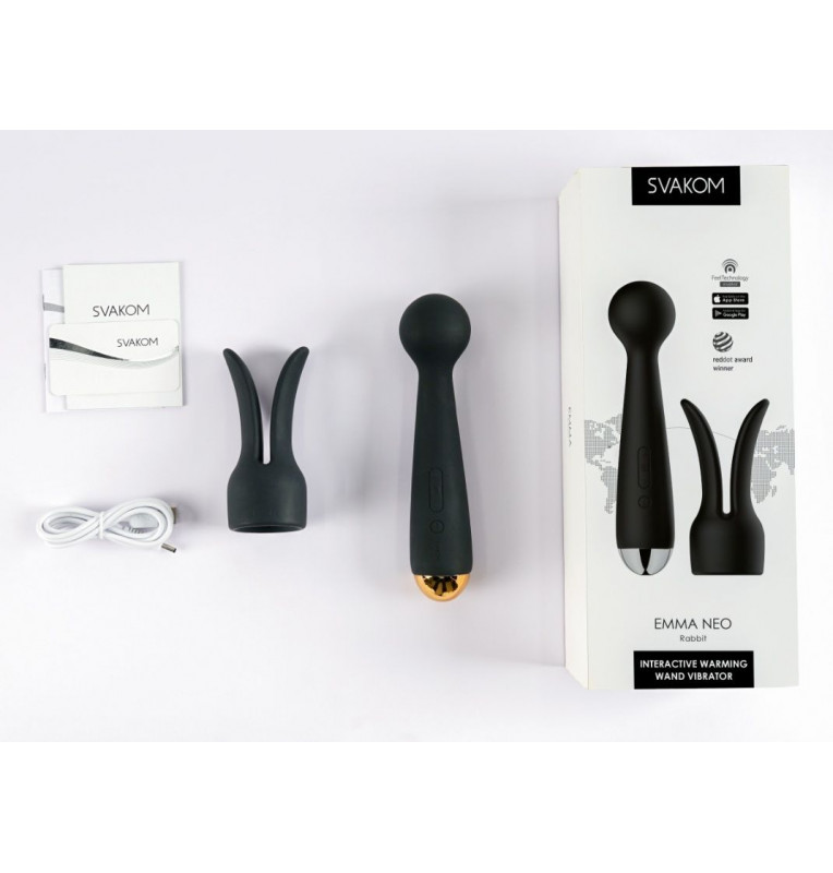 Данное устройство работает через Bluetooth, управляется с помощью приложения на телефоне. Используйте его как хотите и с кем хотите! Игрушку можно подключить к 2D интерактивным видео или использовать в вебкам-шоу! Emma Neo - это мощный, интерактивный, нагревающийся WAND-вибромассажер, с потрясающим дизайном. У игрушки есть насадка в виде потрясающих кроличьих ушек, используйте их для массажа вашей шеи, ушей, сосков и любых других чувствительных зон. Будьте креативны и выведите любовную игру на новый уровень! Устройство может нагреваться до 38°С, используйте его, чтобы согреться холодными зимними вечерами. Мощный мотор, время работы без подзарядки до 4 часов, 5 скоростей вибрации, 5+1 режим - это все про Emma Neo! Водонепроницаемая игрушка, легко мыть, а так же ее можно использовать в душе.