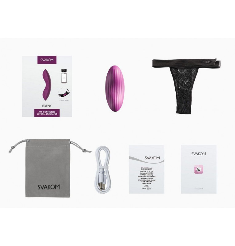 Анатомическая форма, идеальная для вашей интимной зоны, совместно с эргономичным ребристым дизайном, обеспечивают наиболее интенсивные ощущения. Игрушкой можно управлять через приложение - используешь ли ты игрушку для поддержания отношений на расстоянии, или просто хочешь испытать нечто новое – все ограничено лишь твоей фантазией. Подключи игрушку к приложению и предоставь контроль над ней своему партнеру, ваш ужин будет незабываем. Игрушку можно использовать как вибровкладку в трусики - в комплекте прилагается специально разработанное белье на завязках с вкладышами для удержания игрушки в необходимой позиции. 11 режимов вибрации стимулируют каждый участок вашей интимной области, а абсолютно бесшумный мотор позволяет использовать устройство без риска обнаружения. Edeny спроектирован по самым современным технологиям, а цельный корпус из ультра мягкого силикона легко чистить и безопасно использовать в ванной, под душем и других приключений. Управление через приложение, поддержка Bluetooth. Высокотехнологичное устройство, в нежном, эргономичном дизайне с легким изгибом. 1 час подзарядки – 1 час работы. Влагозащита - 100%. В комплекте: вибростимулятор, трусики.