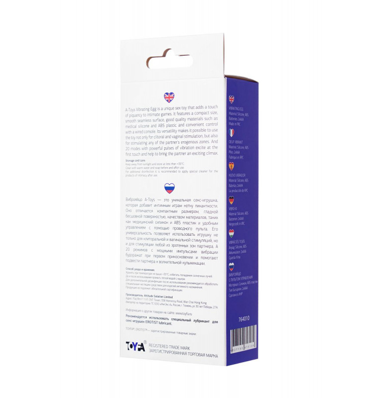 Виброяйцо A-Toys — это уникальная секс-игрушка, которая добавит интимным играм нотку пикантности. Оно отличается компактным размером, гладкой бесшовной поверхностью, качеством материалов, таких как медицинский силикон и ABS пластик и удобным управлением с помощью проводного пульта. Его универсальность позволяет использовать игрушку не только для клиторальной и вагинальной стимуляций, но и для стимуляции любой из эрогенных зон партнера. А 20 режимов с мощными импульсами вибрации будоражат при первом прикосновении и помогают подвести партнера к волнительной кульминации.