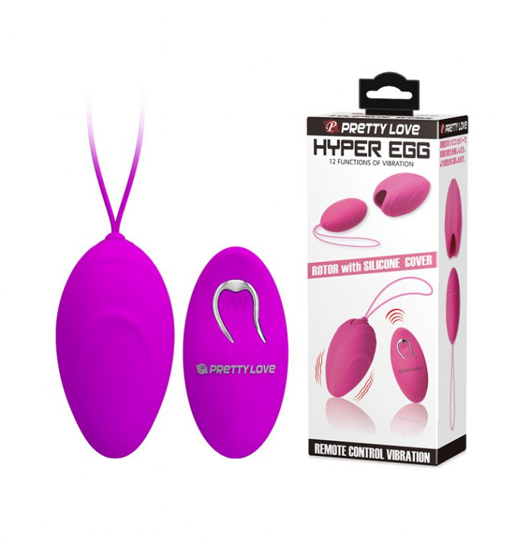 Лиловое виброяйцо Hyper EGG с пультом ДУ и силиконовой оболочкой. Благодаря оболочке можно сделать еще большее большим и рельефным. 12 режимов вибрации управляются при помощи пульта ДУ.