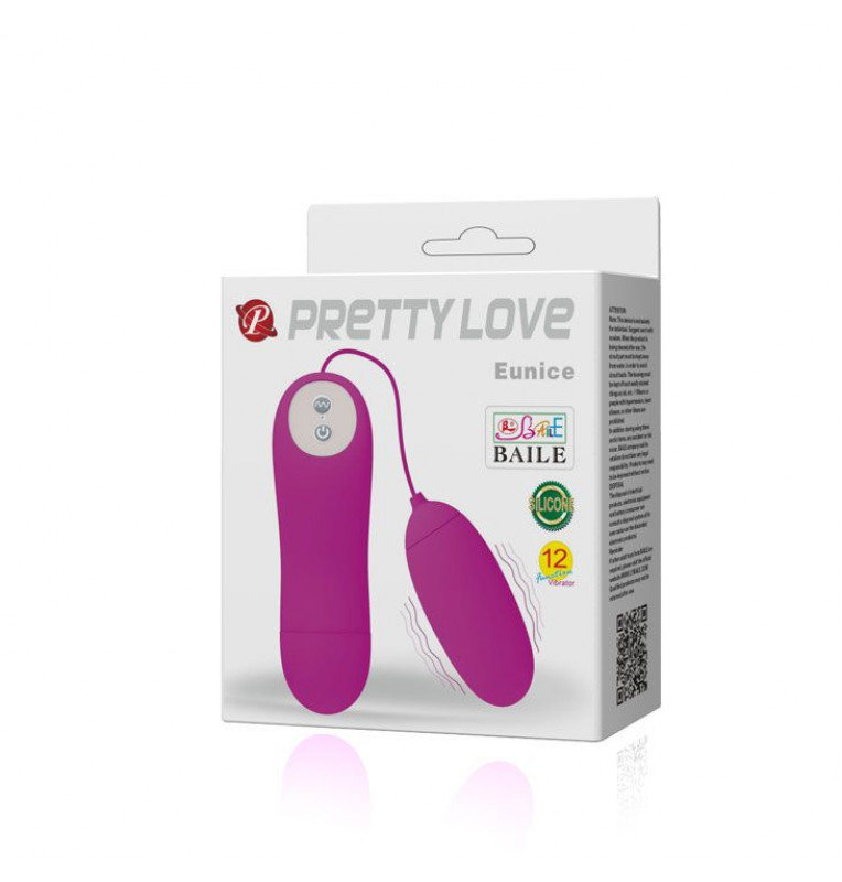 Бархатистое виброяичко Eunice. Управляется выносным пультом, может использоваться для внутренней или внешней стимуляции. 12 режимов вибрации. Вибрация яичка регулируется удобным пультом. Стимулятор выполнен из медицинского силикона.