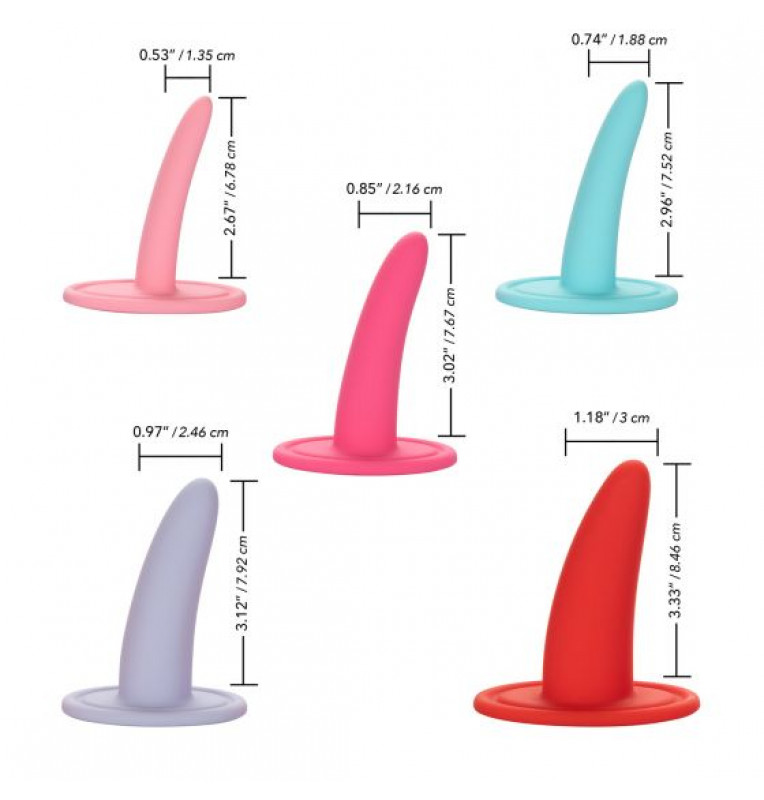 Оживите и укрепите влагалищные мышцы с помощью вагинальных диляторов She-Ology. Уникальный набор расширителей из 5 предметов - эргономично изогнутых и с постепенным увеличением размера, чтобы обеспечить мягкое расширение. Премиальные силиконовые зонды имеют изогнутую основу для нежного введения и стимуляции. Набор был создан для омоложения мышц влагалища и уменьшения дискомфорта при каждом использовании. Используйте маленький расширитель, чтобы начать. Чтобы повысить эластичность мышц, перейдите к большим зондам. Гипоаллергенный силикон премиум класса безопасен для тела, не содержит запаха и не содержит фталатов. Набор рекомендован доктором Шерри А. Росс – доцентом кафедры урологии, а также членом американской ассоциации урологов. При классическом вагинальном использовании расширители предназначаются для снятия чувства сжатости влагалища, жжения и затрудненности вагинального проникновения. Введение расширителей в сочетании с выполнением соответствующих упражнений позволяет осознанно и постоянно напрягать и расслаблять мышцы в целях преодоления и устранения непроизвольных мышечных сокращений, которые делают проникающий половой акт либо крайне болезненным, либо совершенно невозможным. Длина красного расширителя - 8,46 см., диаметр - 3 см. Длина сиреневого расширителя - 7,92 см., диаметр - 2,46 см. Длина розового расширителя - 7,67 см., диаметр - 2,16 см. Длина голубого расширителя - 7,52 см., диаметр - 1,88 см. Длина нежно-розового расширителя - 6,78 см., диаметр - 1,35 см.