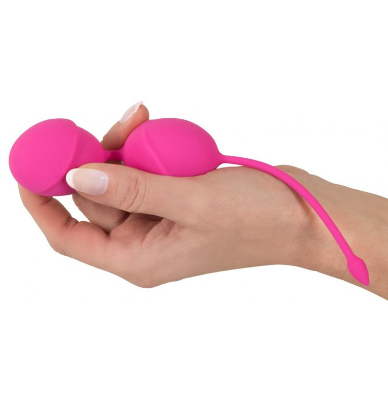 Розовые вагинальные шарики с шнурком. В основании расположен длинный эластичный шнурок для удобства извлечения. Шарики идеально подходит для тренировки мышц тазового дна.
