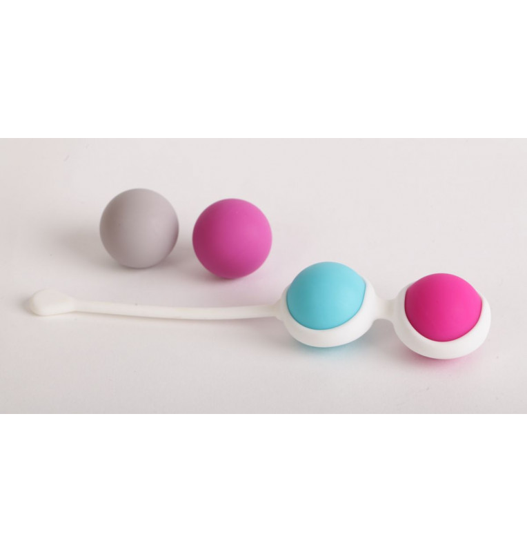 Вагинальные шарики со смещенным центром тяжести для тренировки интимных мышц и массажным эффектом (в упаковке 4 шт. разных цветов). Вагинальные шарики используют для сексуального удовольствия. Петля позволяет легко извлекать шарики. Вес шариков - 15, 25, 35 и 55 гр. Рабочая длина - 7 см.