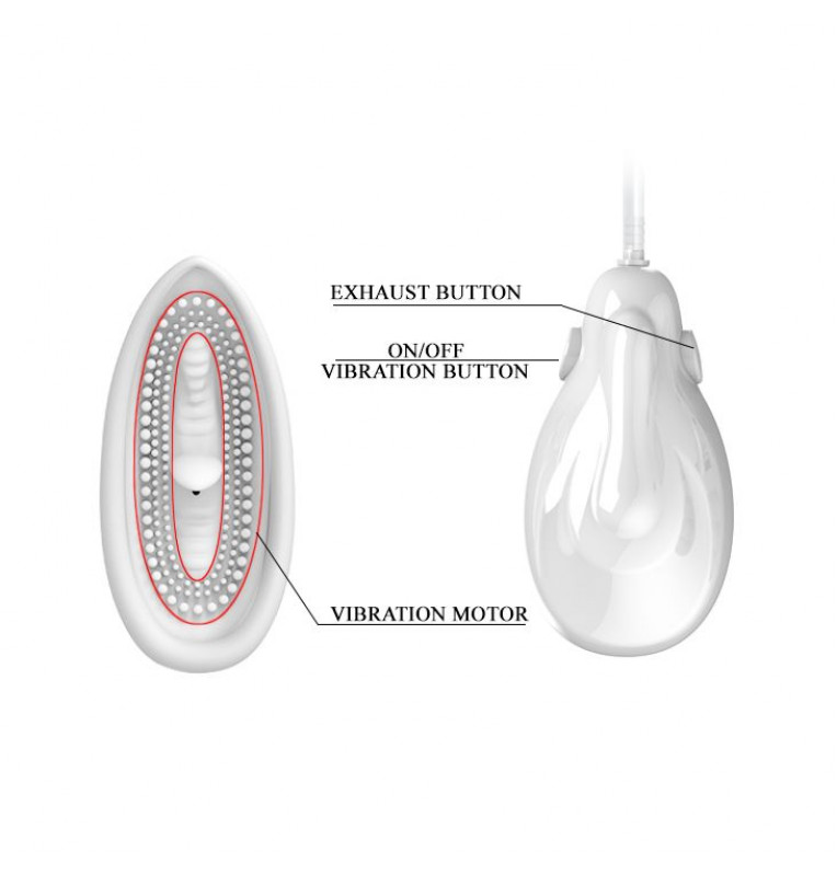 Помпа с автоматической откачкой воздуха для женщин. Клитор и половые губы становятся более чувствительными за счет быстрого прилива крови, что несомненно обеспечит Вам яркий оргазм. Помпа специальной анатомической формы в комплекте с мини вибромассажером, для более ярких ощущений. Длина чаши - 10,4 см.