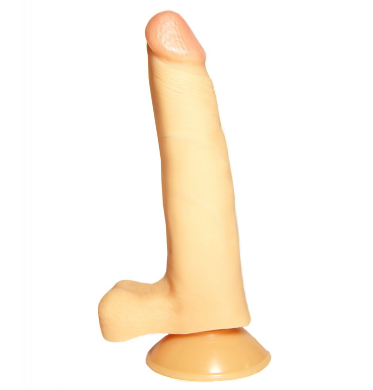 Реалистичный фаллоимитатор №6 с мошонкой и подкрашенной головкой - 16,5 см.
