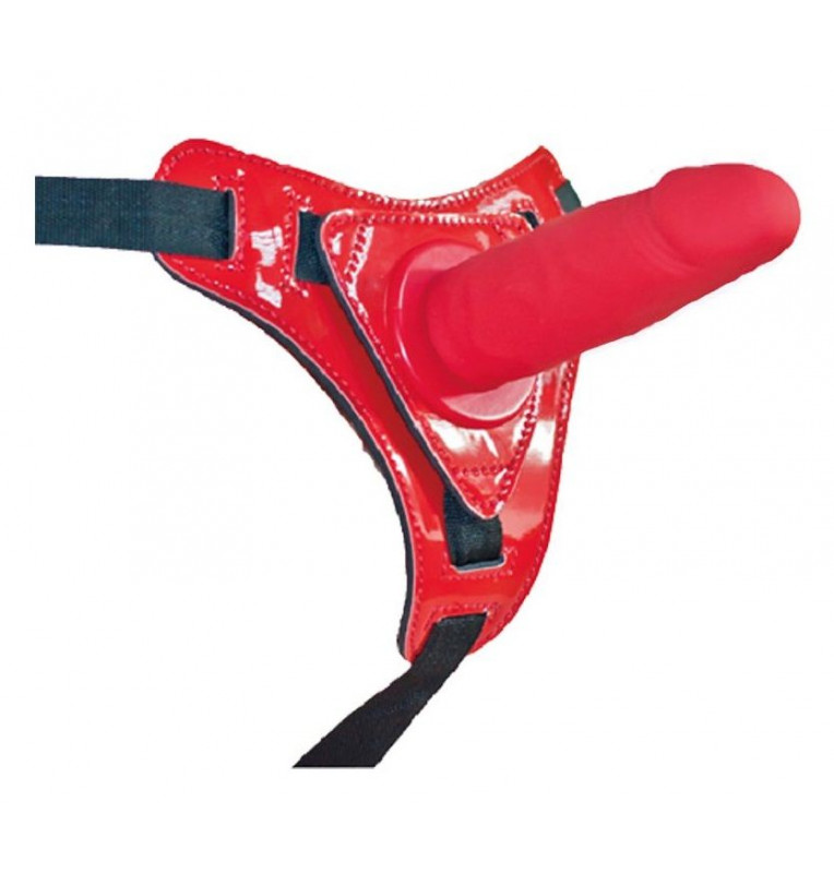 Трусики со сменной насадкой из силикона. Материал трусиков - лакированная искусственная кожа, имеют мягкую внутреннюю отделку, размер регулируется при помощи лент. Насадка изготовлена из силикона, имеет форму члена и рельефную поверхность с ярко выраженной головкой.