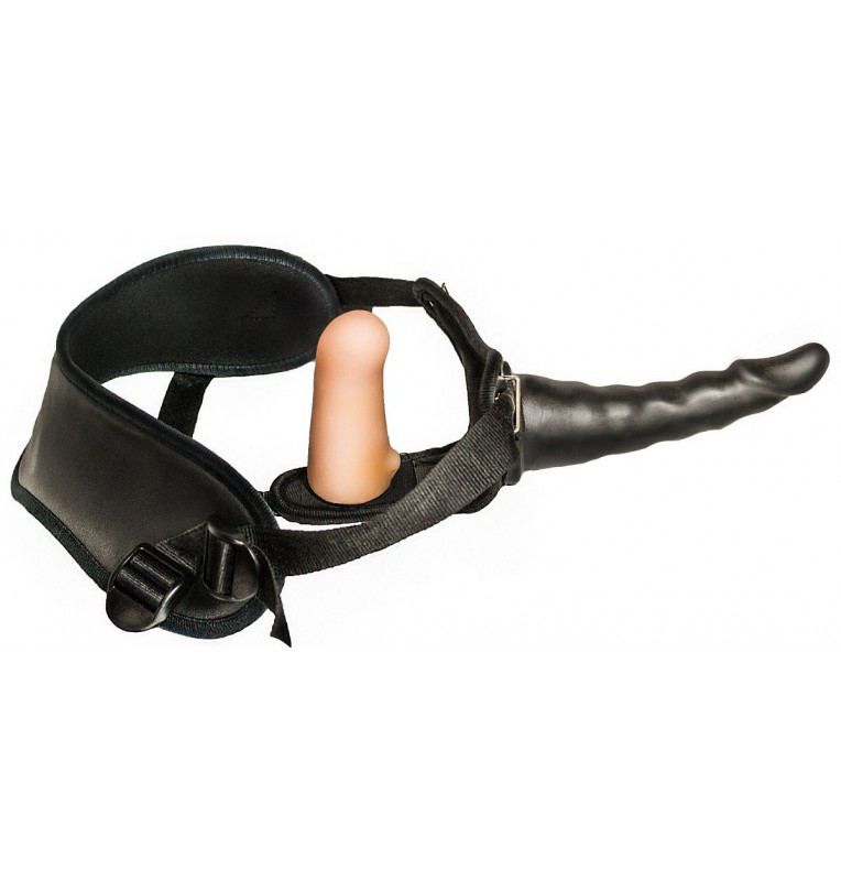 Двойной фаллоимитатор на поясе для женщин. Изготовлен из материала неоскин - новое поколение кибер-кожи . Насадка для страпона черного цвета. Имеет форму члена, не имеет швов. Пояс снабжен регулируемой вагинальной насадкой (телесного цвета), позволяющей адаптировать размеры пояса с индивидуальными особенностями тела женщины. Соединительные параметры стандартны. Длина вагинальной пробки - 10 см., диаметр - 3,5 см.