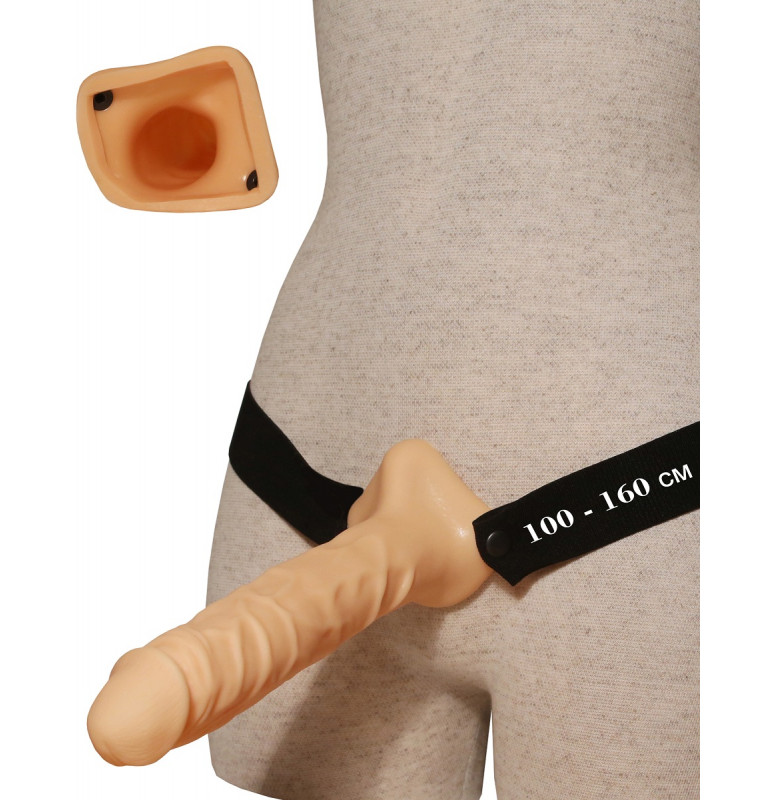 Особенности вашей фигуры больше не будут помехой для использования фаллопротеза. Эта полая модель реалистичной формы фиксируется на теле с помощью широкой и длинной резинки чёрного цвета. Плотно обхватывая бёдра и скрывая внутри вашу плоть, фаллопротез из материала ПВХ-силикон позволит вам порадовать партнёршу чувственными и продолжительными ласками вне зависимости от качества вашей эрекции. Обхват талии - 100-160 см.