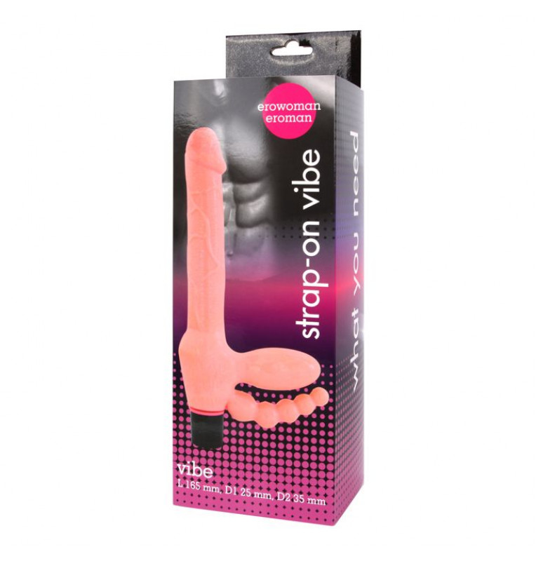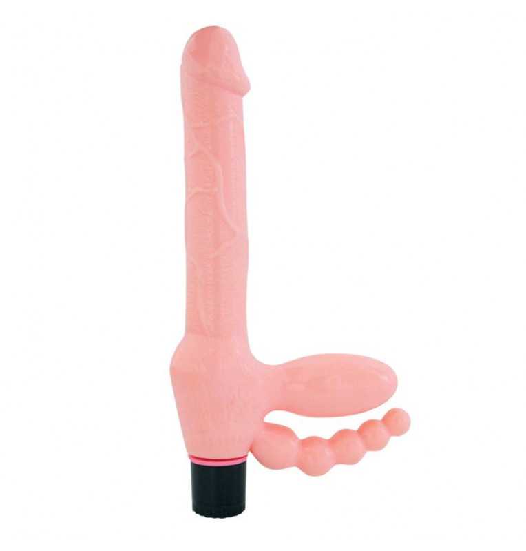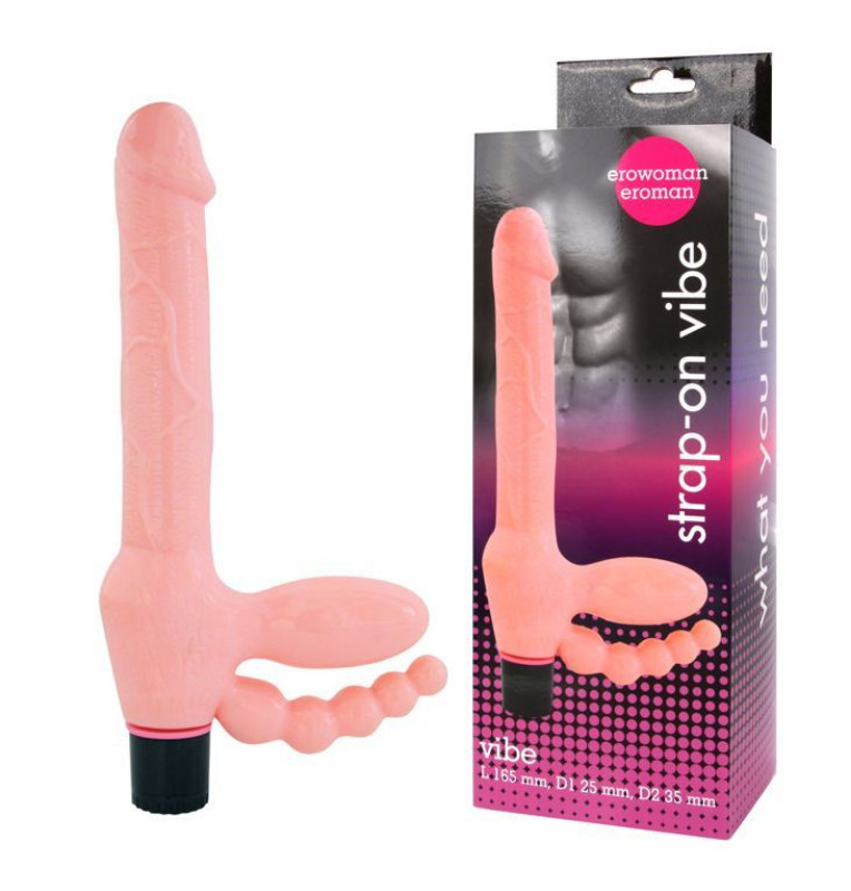 Анатомический страпон с вибрацией, без ремней – шикарная секс-игрушка для любителей ярких эмоций! Реалистичный пенис с четко очерченной головкой и текстурными венками – источник невероятного удовольствия для одного из партнеров, а вагинальная пробка и анальная цепочка – для другого участника любовных игр. Добавит приятных ощущений режим вибрация. Оригинальная конструкция страпона позволяет использовать его без дополнительных креплений. Изделие легко вводиться и извлекается. Комфортно в использовании. Не требует дополнительного ухода. Длина отростка - 16,5 см., диаметр - 3,5 см. Длина вагинальной пробки - 7,5 см., диаметр - 2,5 см. Длина анальной цепочки - 9 см., диаметр - 2 см.