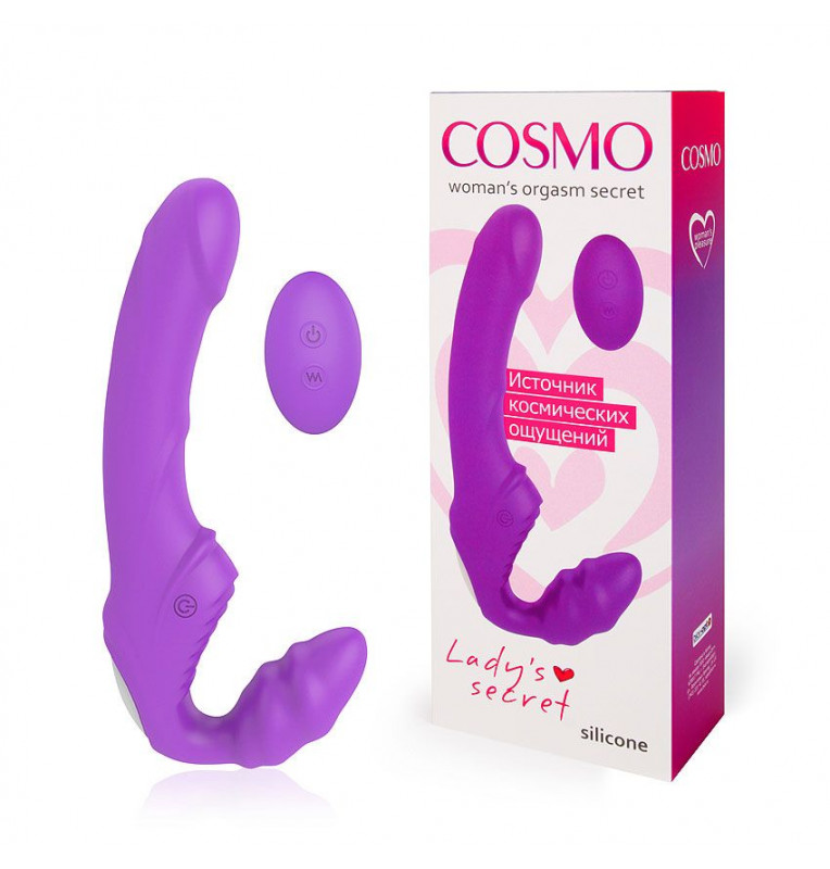 Фиолетовый безремневой страпон с 9 режимами вибрации и пультом ДУ