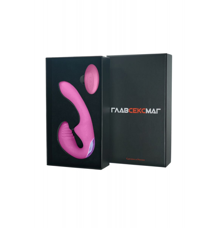 Безремневой анатомический страпон с дистанционным пультом управления в нежно-розовом исполнении. Удобный и многофункциональный страпон. Работает от пульта управления и без пульта. 3 интенсивности вибрации, 10 режимов вибрации. Рабочая длина - 9 см. Длина вагинальной пробки - 7 см., диаметр - 4 см.