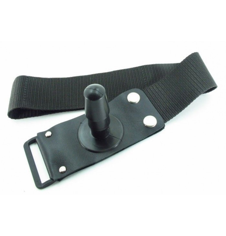 Небольшой по размерам интим-девайс закрепляется на ноге, размер легко регулируется с помощью ремешков. Штырек закреплен на кожаной подложке. Ширина ленты - 5 см.