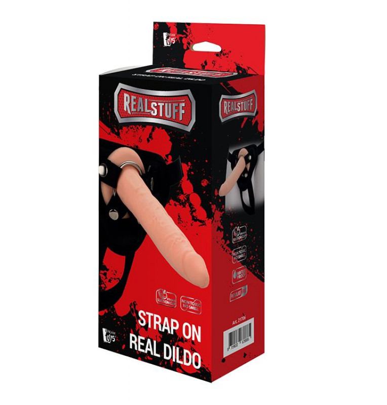 Телесный страпон на черных трусиках STRAP ON REAL DILDO - 20 см.