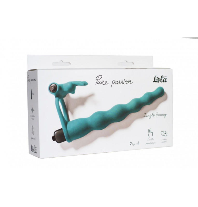 Насадка для двойного проникновения Jungle Bunny из гипоаллергенного силикона. Обладает рельефной и гибкой формой. Надежно и крепится у основания члена благодаря силиконовому кольцу. Кольцо хорошо тянется и подходит на любой размер. Дополнительная стимуляция осуществляется благодаря вибропуле с 10 скоростями. Легко извлекается из силиконовой насадки и может использоваться отдельно. Вибропуля в верхней части для клиторальной стимуляции добавит приятных ощущений партнёрше. Рабочая длина - 16,5 см. Диаметр петли для члена - 3,1 см.