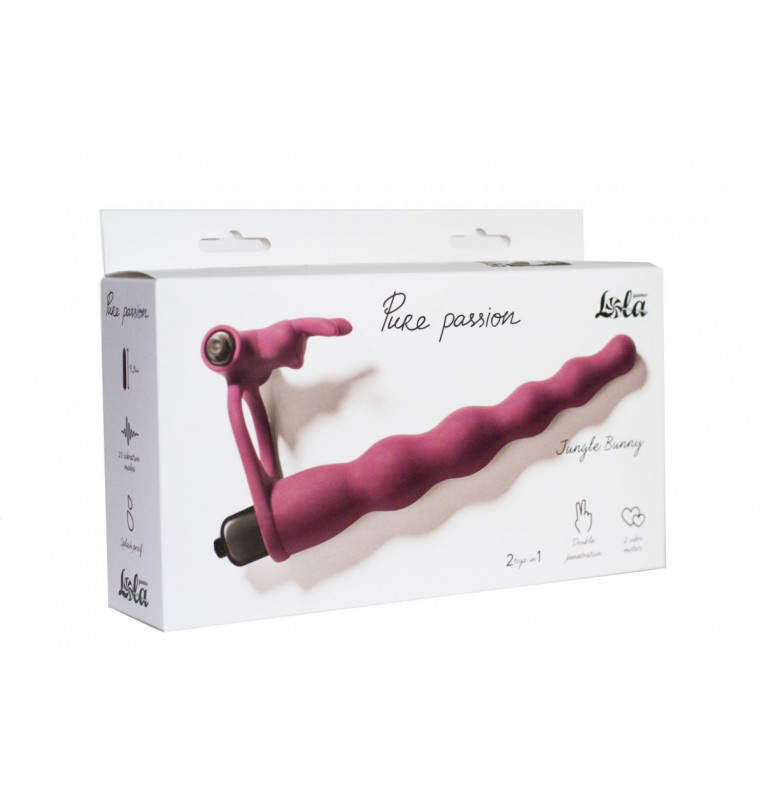 Насадка для двойного проникновения Jungle Bunny из гипоаллергенного силикона. Обладает рельефной и гибкой формой. Надежно и крепится у основания члена благодаря силиконовому кольцу. Кольцо хорошо тянется и подходит на любой размер. Дополнительная стимуляция осуществляется благодаря вибропуле с 10 скоростями. Легко извлекается из силиконовой насадки и может использоваться отдельно. Вибропуля в верхней части для клиторальной стимуляции добавит приятных ощущений партнёрше. Рабочая длина - 16,5 см. Диаметр петли для члена - 3,1 см.
