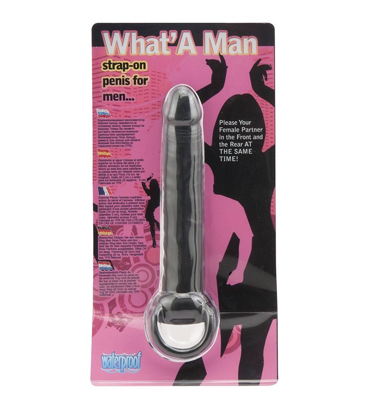Чёрная насадка на пенис для анальной стимуляции WHATA MAN - 16 см.