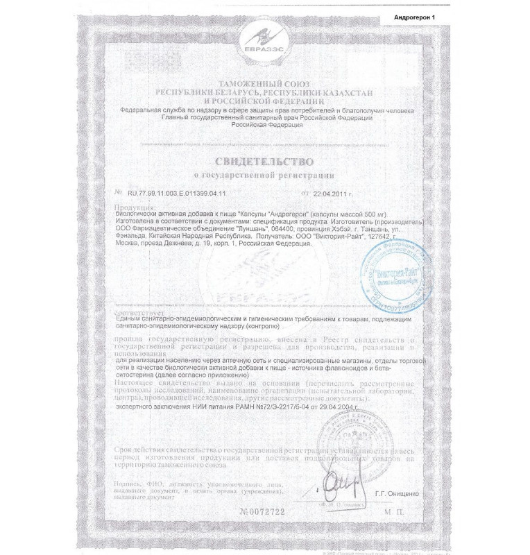 Биологически активная добавка к пище Андрогерон - 1 капсула (500 мг.)