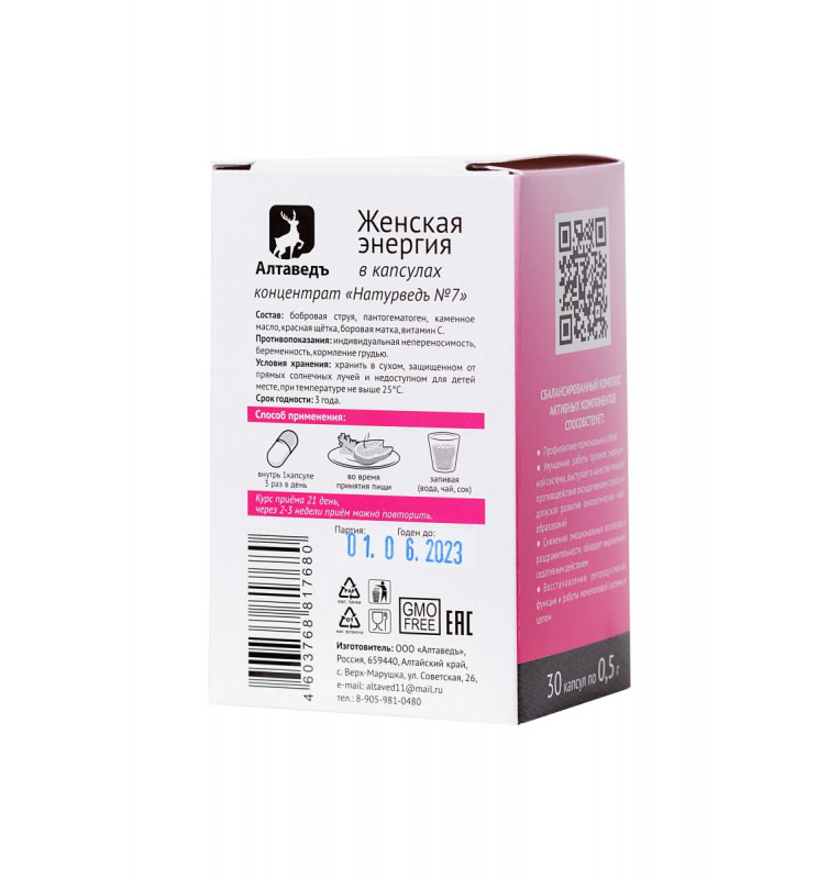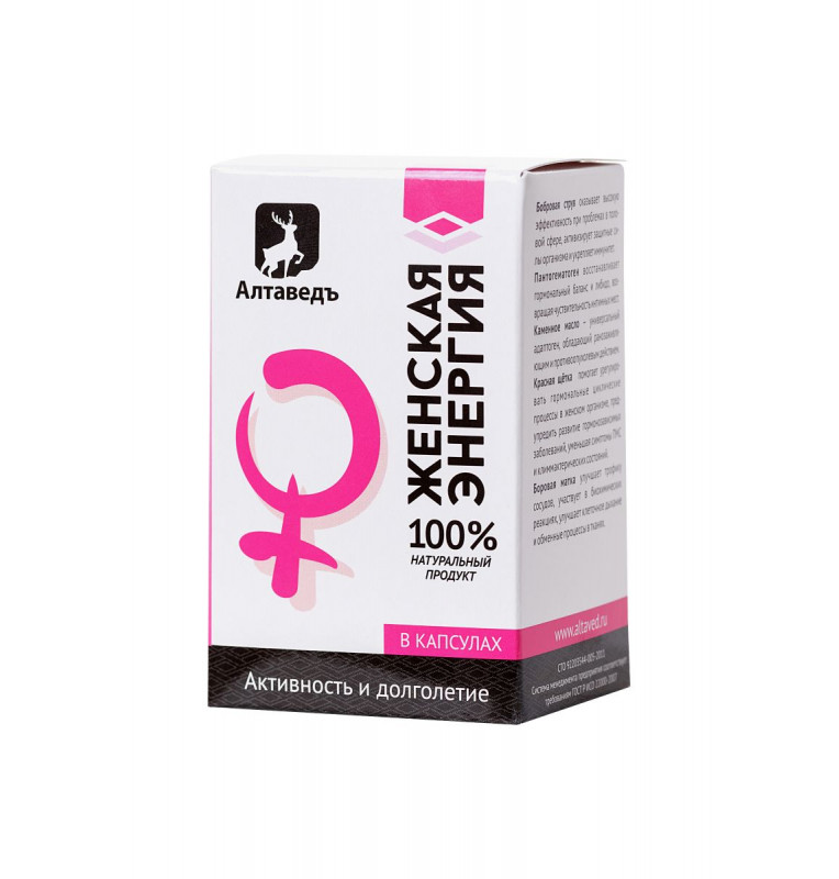 Сбалансированный комплекс активных компонентов способствует: -профилактике гормональных сбоев -улучшению работы органов эндокринной системы, выступает в качестве мощного противодействия оксидативному стрессу, не допуская развития онкологических новообразований -снижению эмоциональных всплесков и раздражительности, обладает выраженным седативным действием -восстановлению репродуктивной функции и работы мочеполовой системы в целом. Бобровая струя улучшает работу многих систем: кровеносной, сердечно-сосудистой, иммунной, нервной, нормализует гормональный фон, останавливает воспалительные и опухолевые процессы, снимает судороги и даже нейтрализует последствия радиационного облучения. Представляет собой универсальное природное вещество, оказывающее общеукрепляющее, тонизирующее и омолаживающее действие на организм. Пантогематоген – натуральный источник железа, действие которого направлено на пробуждение и включение внутренних резервов организма, восстановление физиологических функций, подъём иммунного статуса. Результатом является повышение общей сопротивляемости организма к различным заболеваниям, вызванными инфекциями, несбалансированным питанием, условиями труда, стрессами или окружающей средой. Пантогематоген восстанавливает гормональный баланс и либидо, возвращая чувствительность интимных мест. Каменное масло - универсальный адаптоген, содержит рекордное количество микро и макроэлементов жизненно необходимых организму человека, обладает выраженными ранозаживляющими, гепатопротекторными, антибактериальными, противоопухолевыми и антиметастатическими свойствами. Каменное масло ускоряет заживление переломов, повреждений, эффективно при лечении бесплодия, применяется для профилактики возникновения и развития злокачественных новообразований. Каменное масло способствует активизации иммунной защиты организма, уничтожая вирусы и очищая кровь. Красная щётка помогает урегулировать гормональные циклические процессы в женском организме, предупредить развитие гормонозависимых заболеваний, уменьшая симптомы ПМС и климактерических проявлений. Боровая матка улучшает трофику сосудов, участвует в биохимических реакциях, улучшает клеточное дыхание и обменные процессы в тканях.