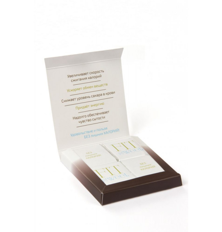 Специальный горький шоколад FITsweet. - Увеличивает скорость сжигания калорий - Ускоряет обмен веществ - Снижает уровень сахара в крови - Придаёт энергию - Надолго обеспечивает чувство сытости - Состав разработан российскими учеными и не имеет аналогов в мире - Не имеет противопоказаний* и побочных эффектов - Без транс-жиров и искусственных добавок - Не БАД Состав разработан специально для женщин и мужчин, следящих за здоровьем и своим внешним видом. Теперь быть в форме и позволить себе насладиться превосходным вкусом бельгийского шоколада стало возможным! Пищевой комплекс АйМикс Слим представляет собой смесь растительных экстрактов: - гарцинии камбоджийской (снижает аппетит, расщепляет жиры, снижает уровень холестерина в крови) - дикого ямса (выравнивает уровень сахара в крови и гормональный фон, поднимает настроение) - пасифлоры (повышает работоспособность, помогает организму противостоять стрессу и хронической усталости, ускоряет обмен веществ) - бромелаина (нормализует обменные процессы в организме, укрепляет иммунитет, помогает справляться с физическими нагрузками) - папаина (улучшает процесс пищеварения и усвоения питательных веществ, способствует похудению) Пищевая ценность на 10 г продукта: белки - 8,2 г жиры - 38,0 г углеводы - 33,4 г. ккал - 460/1926 кДж. Категория риска: потребители с аллергией на соевый лецитин, индивидуальной непереносимостью шоколада (сахарный диабет).