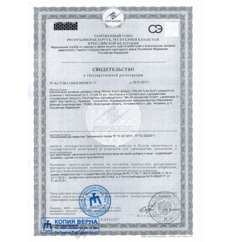 Биологически активная добавка к пище Милан Форте флюид - 10 мл.