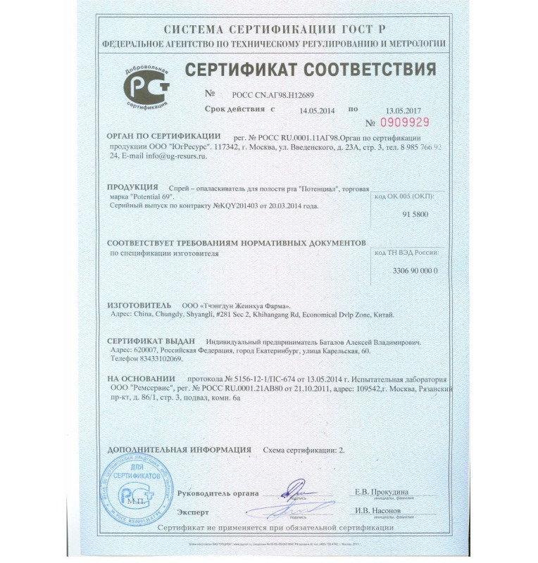 Спрей POTENTIAL 69 повышает половую активность и усиливает сексуальный отклик у женщин, а за счет травяной добавки также увлажняет и придает мятную свежесть полости рта! * Максимально быстрое наступление эффекта - действует уже через 5-10 минут после применения! * Не требует запивания водой: спрей распыляется в подъязычную область * В отличие от БАД форма спрея позволяет получать заряд сексуальной энергии незаметно для окружающих, независимо от того, видит кто-либо применение спрея или нет - стильная упаковка ничем не выдаст истинное назначение препарата! * Благодаря компактному размеру вы можете всегда носить его с собой и использовать в любое время. В состав входит: - трава горянки корейской - вещества, входящие в состав травы горянки, повышают чувственные ощущения - корень астрагала оказывает общеукрепляющее действие, стимулирует кроветворение, проявляют тонизирующее, иммуностимулирующее действие - корица - является одним из самых мощных афродизиаков стимулирует обмен веществ и кровообращение, снимает депрессивные настроения - родиола розовая (золотой корень) - нормализует функцию эндокринных желез – щитовидной и половых, способствует общему укреплению организма и стимуляции половой активности, укрепляет нервную систему и имеет деликатное анти-депрессивное влияние повышает работоспособность на фоне утомления и при выполнении тяжелой физической работы - бензойная кислота (консервант) - ментол и др. Не содержит сахара, спирта. Спрей не является лекарством, биологически активной добавкой, тонизирующим напитком. Противопоказания: с осторожностью использовать людям с повышенным артериальным давлением. Использовать беременным и кормящим женщинам запрещено. Возможна индивидуальная непереносимость компонентов.