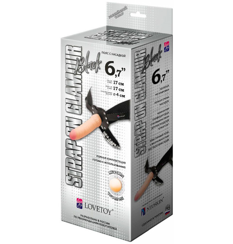 Пояс-трусики с насадкой Glamour. Аккуратный, с удобной системой фиксации. Насадка реалистичная из неоскин.