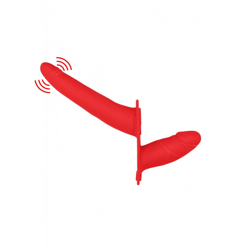 Красный двойной вибрострапон Double Vibrating Silicone Strap-On Adjustable - 15,5 см.