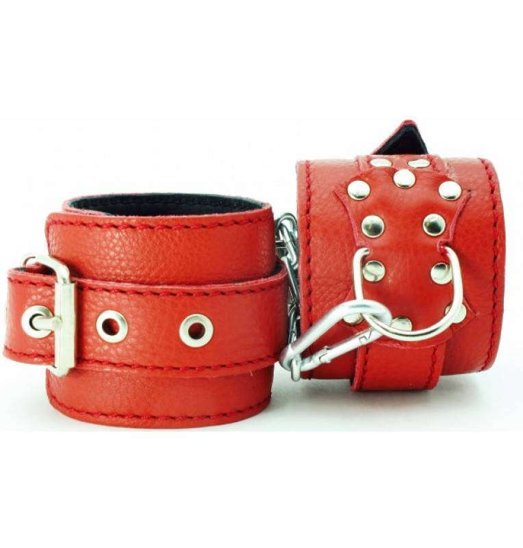 Красные кожаные наручники с клепками