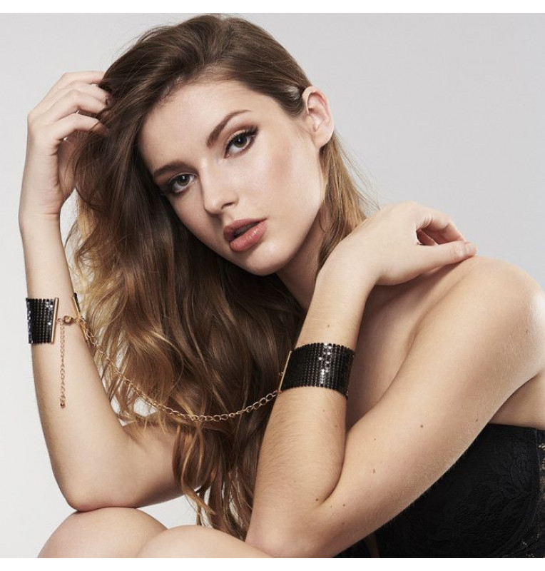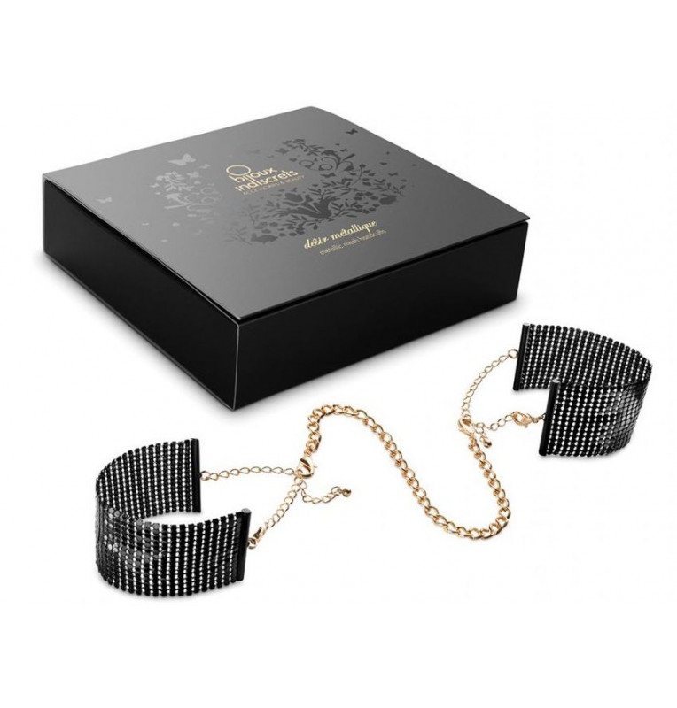 Пора начинать настоящую битву обольщения! Испробуйте интимную бижутерию на своем партнере! Дизайнерские наручники Desir Metallique Handcuffs выполнены в виде широких браслетов из плоских цепочек, которые соединяются цепью на застежках. Надевайте украшение при любом удобном случае. Можете использовать браслеты даже как наручники, однако они будут выполнять только роль декора. Длина манжет - 12 см., ширина - 3 см.