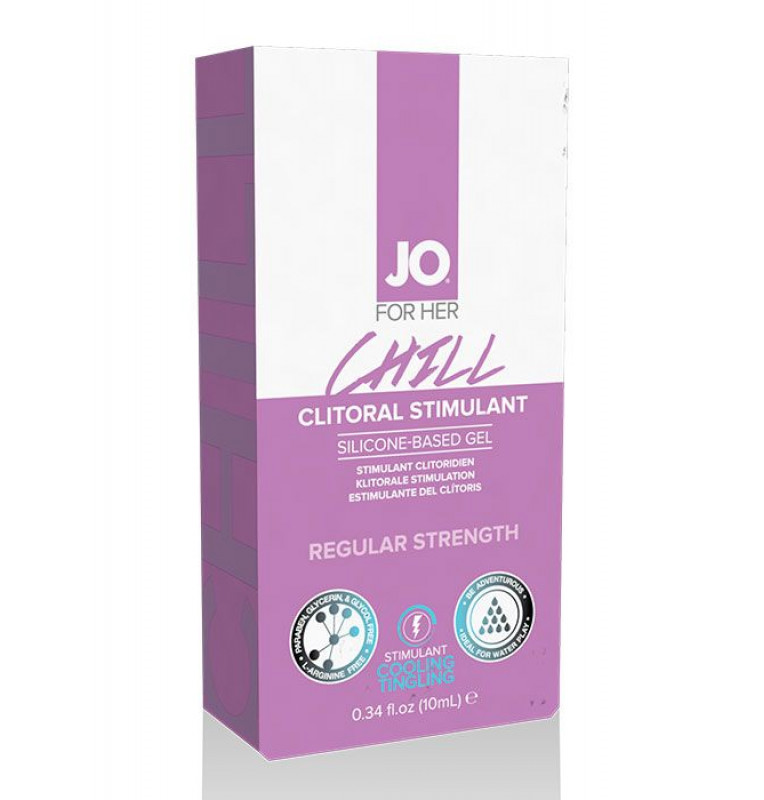 Усиление приятных ощущений во время близости, более интенсивный вагинальный оргазм… Именно этим займётся возбуждающий гель мягкого воздействия JO Chill. Стимулируя клитор, средство на силиконовой основе приблизит момент яркой сексуальной разрядки. Гель не содержит L-аргинина и гормонов, а также совместим с изделиями из латекса.