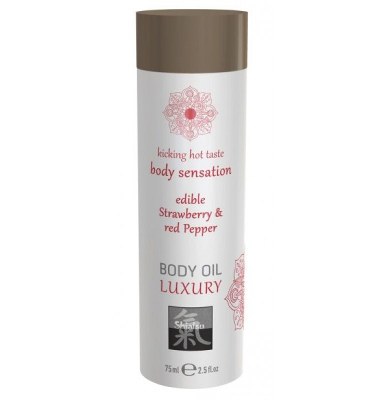 Съедобное массажное масло с ароматом клубники и красного перца - 75 мл.