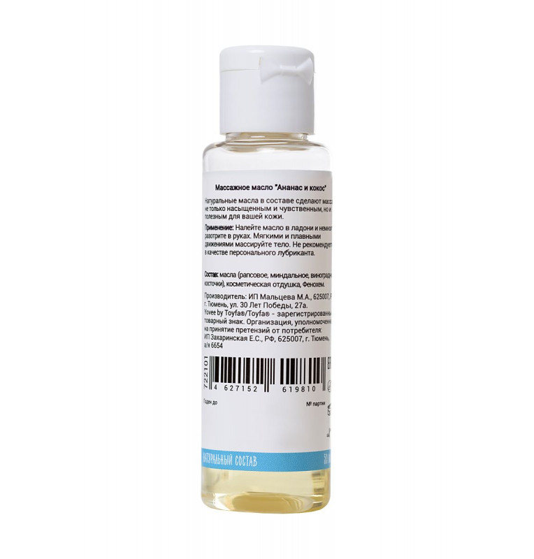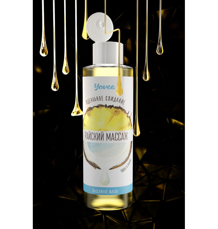 Натуральные масла в составе сделают массаж не только насыщенным и чувственным, но и полезным для вашей кожи. Отлично скользит и смывается водой. Пикантный и тропический аромат кокоса и ананаса с лёгкостью расслабит и подготовит вас к чувственному массажу.Идея для свидания: Подготовьте фрукты и коктейли и наденьте летний наряд. Предложите партнёру райский массаж. Сделайте массаж своим обнажённым телом — так он станет ещё более интимным и чувственным. Такое свидание останется в памяти надолго!