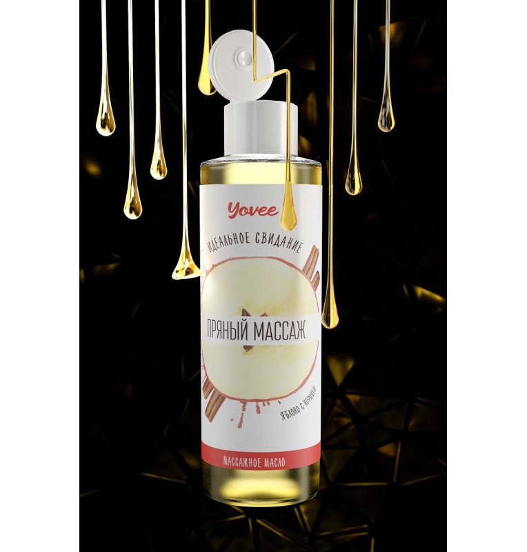 Натуральные масла в составе сделают массаж не только насыщенным и чувственным, но и полезным для вашей кожи. Отлично скользит и смывается водой. Бодрый и пряный аромат яблока с корицей с лёгкостью расслабит и подготовит вас к чувственному массажу.Идея для свидания: приготовьте глинтвейн для свидания в прохладный и серый вечер. Предложите партнеру согревающий массаж с пряными нотками. Сделайте массаж своим обнажённым телом — так он станет ещё более интимным и чувственным. Такое свидание останется в памяти надолго!