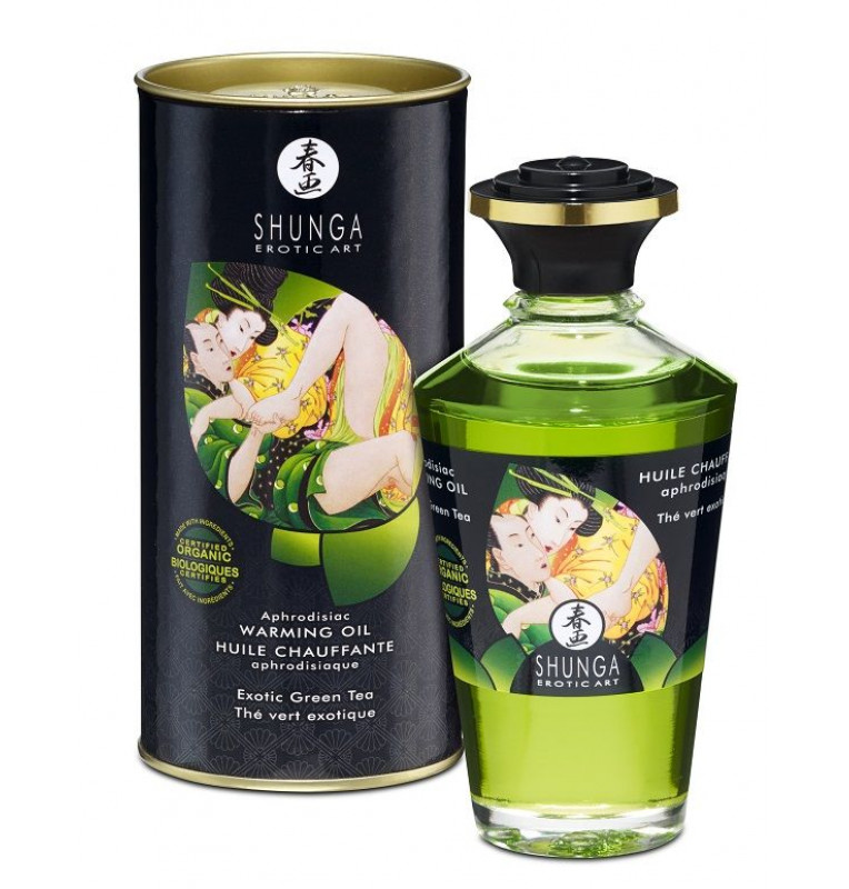 Разогревающее и съедобное масло для тела с натуральными ароматом зелёного чая. Усильте удовольствие и ощущения эрогенных зон вашего партнера. Согревающий эффект масла в сочетании с превосходным ароматом экзотического зеленого чая доставят максимум удовольствий. •Изготовлено из чистого растительного глицерина и экстракта семян кукурузы, являющихся сертифицированными органическими продуктами •Превосходный аромат экзотического зеленого чая •Идеально подходит для использования на эрогенных зонах •Согревающий эффект возникает благодаря теплому дыханию •Восхитительный вкус •Усиливает ощущения •Не содержит сахара Используйте во время предварительных ласк, чтобы усилить ощущения и продлить наслаждение. Нанесите небольшое количество масла на все тело и особенно на эрогенные зоны. Начинает действовать от горячего дыхания нежных интимных поцелуев.